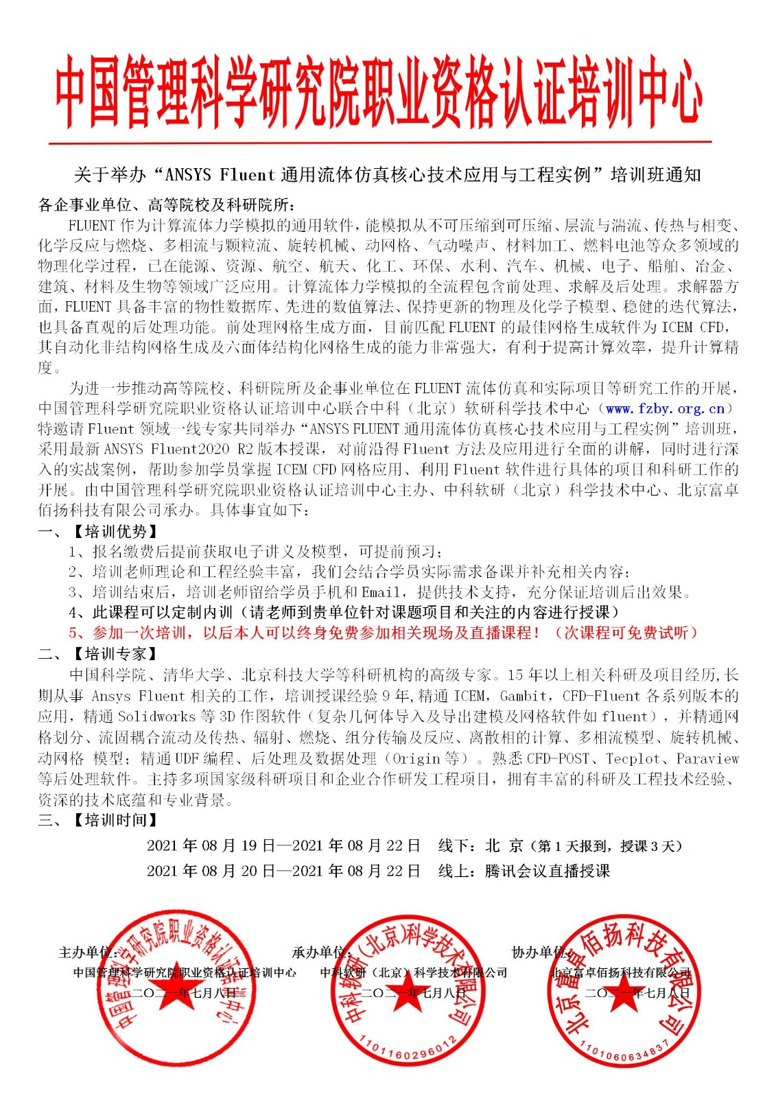 关于举办“ANSYS Fluent通用流体仿真核心技术应用与工程实例”培训班通知